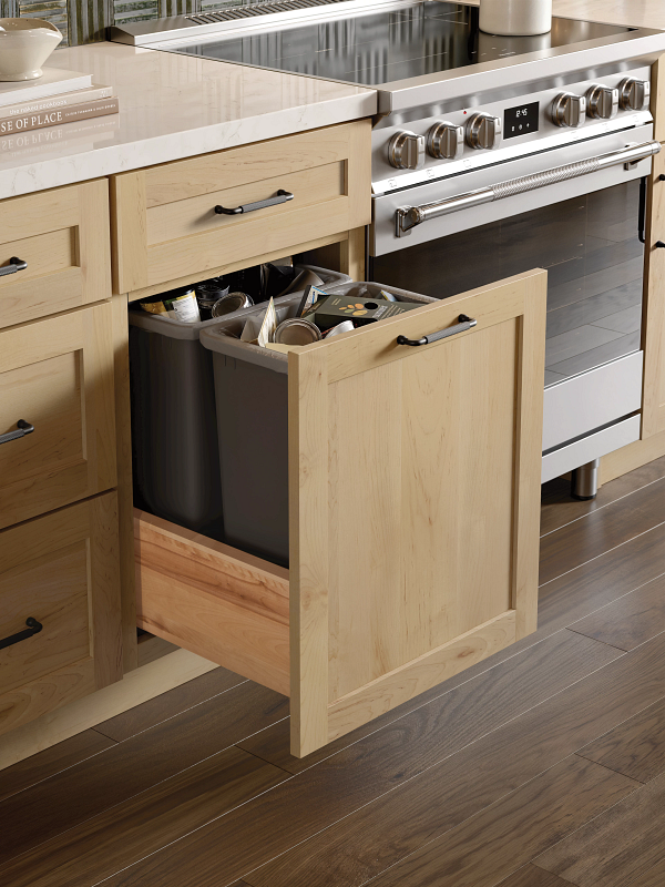 Our Orion door style is a shaker door with 2 1/4” thick styles and rails, 5pc drawer headers are standard, durable hardware and finish, offered in stained hardwood + veneer and painted hardwood + MDF. It features full overlay, soft close doors and drawers with a versatile selection of sizes and options to serve most spaces.